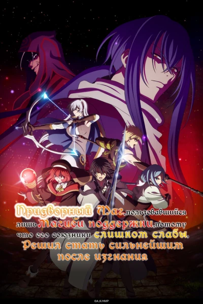 «Придворный маг, пользовавшийся лишь магией поддержки, потому что его союзники слишком слабы, решил стать сильнейшим после изгнания» онлайн смотреть аниме
